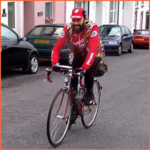 The Marshalls deliberately chained off part of the car par exit, so that people had to funnel out. ( Hind Street gets steeper and very narrow at the top, so there was bound to be congestion) Unfortunately many dived under the chain, so the huge group climbing the hill came to a grinding halt after a few when a few had to stop and stagger! Organiser - Kevin Presland. |